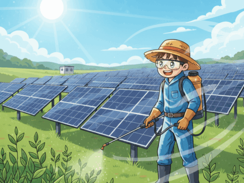 2026年度の除草剤散布・草刈りの受付を致しました。 対象範囲も年々拡大しています。 同時にパネル洗浄や点検も承っております。 ご不明な点などご気軽にお問い合わせください。